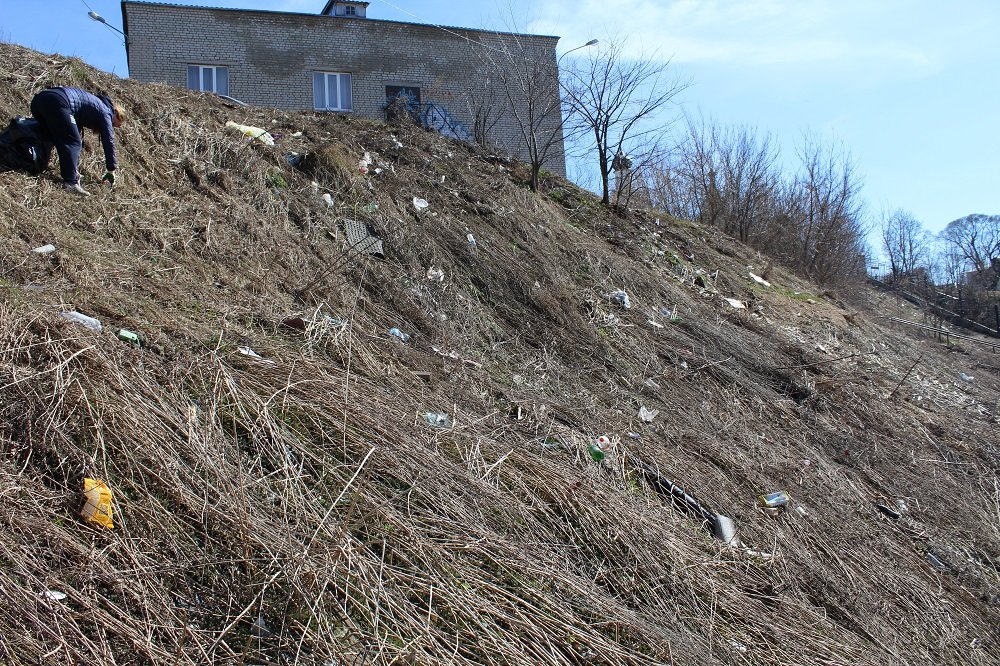 Администрацией района был выделен участок города, который необходимо было привести в порядок. Для организации мероприятия было подготовлено достаточное количество тары и инвентаря. Мероприятие прошло воодушевленно и активно. Совместными усилиями была очищена круча от прошлогоднего мусора.