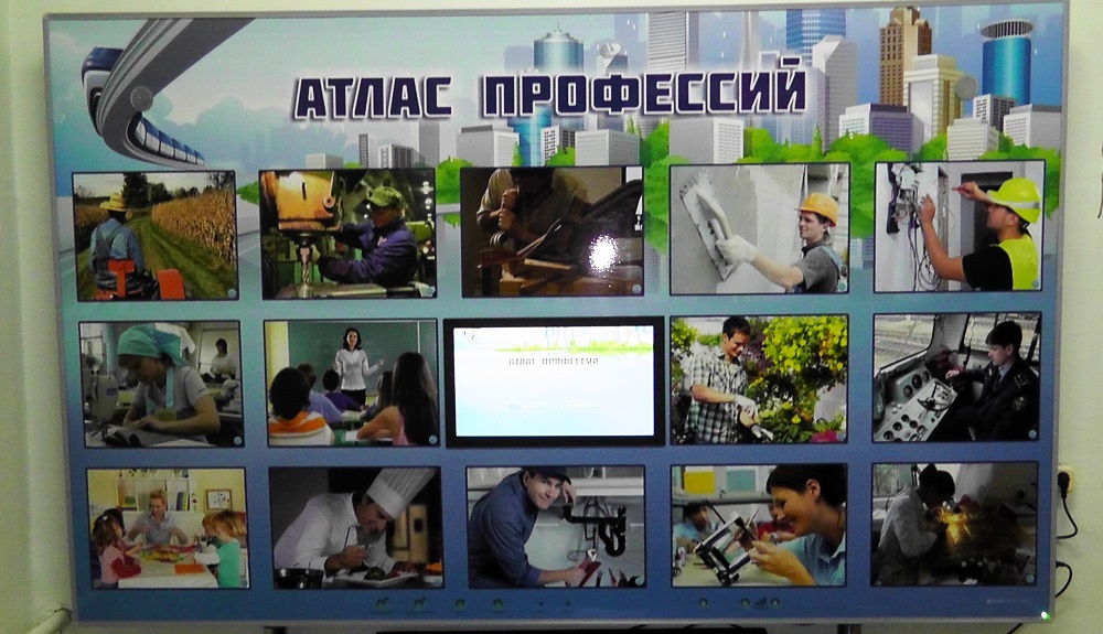 В целях реализации комплекса мер «Внедрение и развитие эффективных социальных практик, направленных на сокращение бедности семей с детьми и улучшение условий жизнедеятельности детей в таких семьях, на территории Владимирской области» в ГБУСО ВО «Киржачский комплексный центр социального обслуживания населения» на средства гранда приобретен многофункциональный интерактивный стенд-тренажер «Атлас профессий».