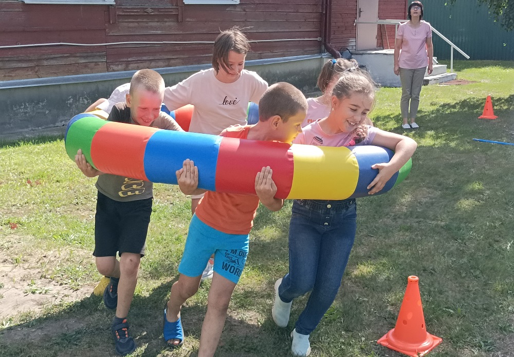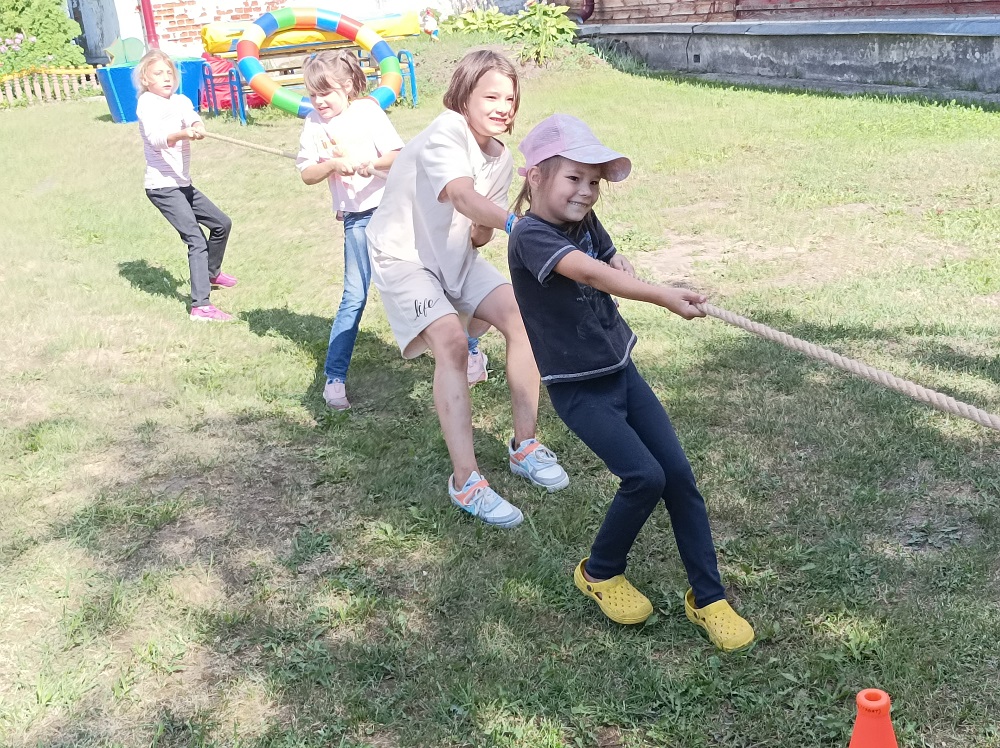 Забавные эстафеты - давняя и проверенная любовь всех детей. Ребята с большим удовольствием и энтузиазмом приняли участие в эстафете с гигантскими лыжами, гигантскими вёдрами, гигантским обручем и конечно перетягиванием каната, показав себя сильными, ловкими и быстрыми.Солнце, воздух, детский смех укрепляют дружбу и здоровье детей.