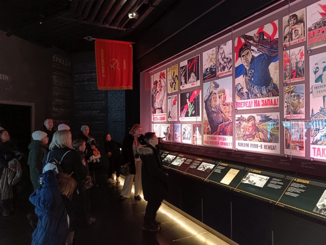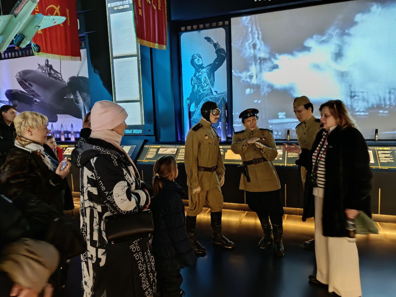 Вместе с экскурсоводом прошли историю каждого дня Великой Отечественной войны, показанной в 35 залах, 27 из них – тематические залы – Брестская крепость, оборона Севастополя, Москва во время войны и многое другое, вызывающее непередаваемые сильные эмоции. Благодаря высоким технологиям залы музея полностью погружают в обстановку важных этапов войны и дают ощущение эффекта присутствия, а фотогалерея «Река времени» содержит информацию о фронтовиках, партизанах, жителях блокадного Ленинграда, тружениках тыла и многих из тех, кто встал на защиту Родины.