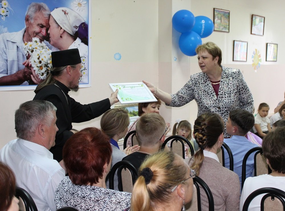 На мероприятии чествовали шесть семей, в том числе семью, воспитывающую ребенка-инвалида, семью с опекаемым ребенком, семью, построившую жизнь в соответствии с традициями православной христианской культуры, многодетную семью, активную семью, супружескую пару, празднующую 50-летний юбилей брака. Самые активные и дружные семьи были отмечены благодарственными письмами и памятными подарками. Выставка творческих работ, рукоделий, а так же мастер-класс по изготовлению символа семьи – «Ромашки» не оставили равнодушными присутствующих. Завершилось мероприятие дружным чаепитием со сладкими угощениями в теплой дружеской атмосфере.