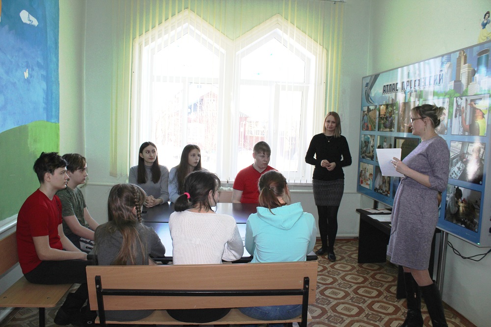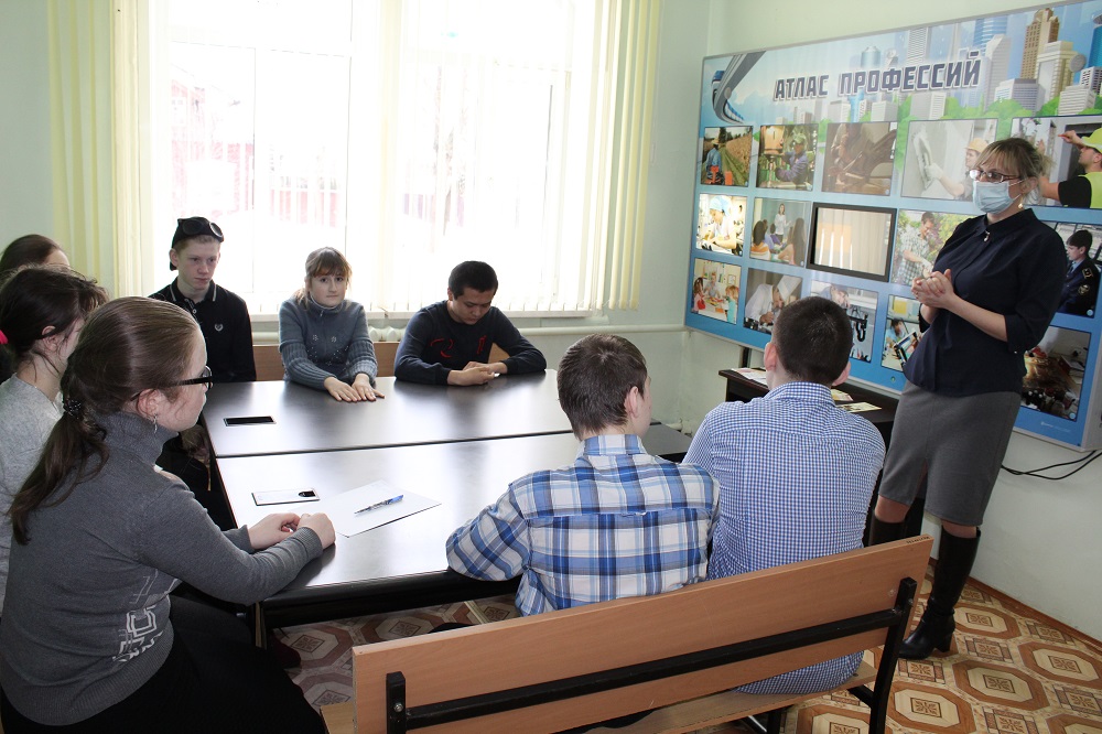 25.03.2021 г. Психологом Центра занятости населения проведена профориентационная беседа с несовершеннолетними о выборе профессии. Так же ребята узнали о специфике работы профессий: швея, зубной техник, машинист локомотива и др. Так же специалистом Центра занятости населения проведена профориентационная игра «Найди пару». В конце мероприятия ребята получили подарки от спонсора.