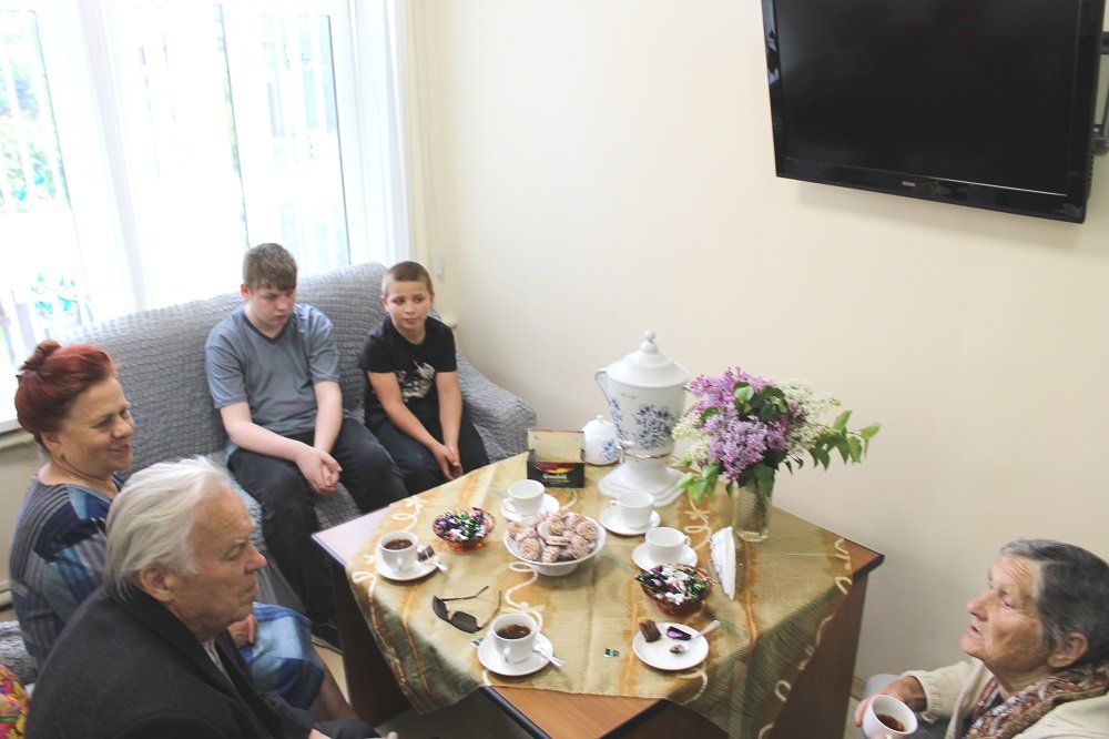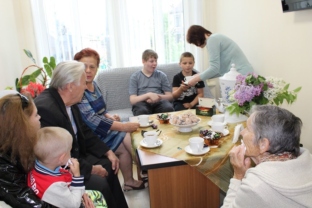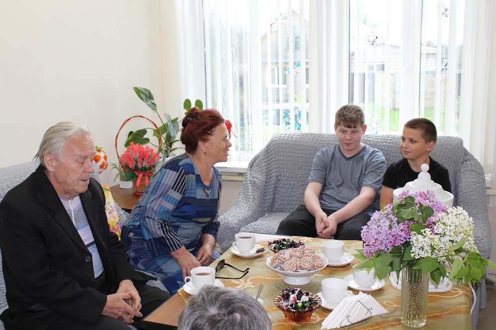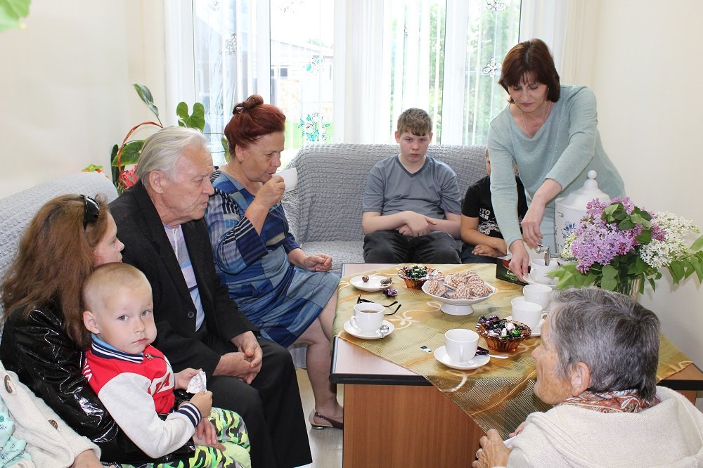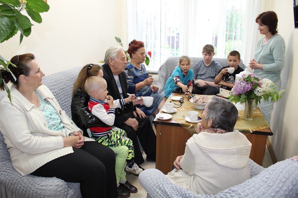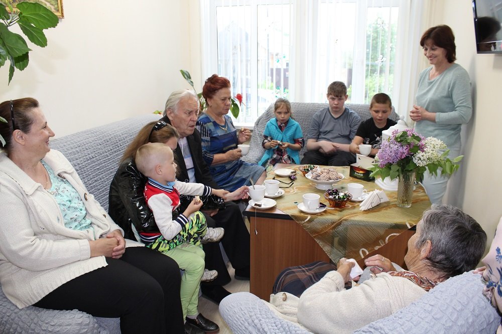 Перед  концертной  программой  в уютной гостиной заместитель директора Центра Волкова Наталья Викторовна гостеприимно встретила семей с детьми  и представителей старшего поколения. Гости  с  большим   интересом  слушали рассказы жены участника войны  Е. В. Суховой. Екатерина Васильевна  рассказала, как семья в  тяжёлые  военные годы  испытывала трудности и преодолеть их помогали крепкие семейные отношения, поддержка друг друга, любовь и забота о близких. Семейная пара, Владимир Дмитриевич Волков и Татьяна Алексеевна Сафронова, поделились, как после  войны  учились, работали, создавали  и  оберегали  свой  семейный  очаг, растили  детей  и  внуков. В заключении представители старшего поколения пожелали  молодым семьям  быть  здоровыми,  учиться,  работать, уважать   старших  и  друг  друга, любить  и  оберегать  нашу  Родину.